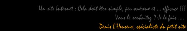 Un site : Cela doit être simple, peu onéreux et ... efficace !!! Vous le souhaitez ? Je le fais .... Denis L'heureux, spécialiste du petit site